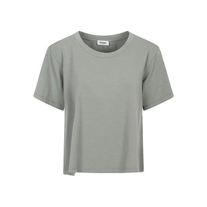 Military green T-shirt, half sleeves, crew neck, straight hem. Cotton t-shirt Size and Fit - This piece fits true to size. We recommend you get your regular size. Model is 1,75m / 5ft 8in wearing size 40 (IT)