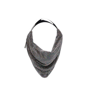 Ursula rhinestone-embellished tote bag from BENEDETTA BRUZZICHES featuring silver-tone, silk lining, rhinestone embellishment, draped design, single shoulder strap, top zip fastening and main compartment. Ursolina crystal-embellished clutch bag Size and Fit - Width 8,27 in / 21 cm