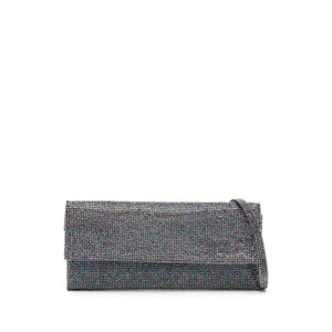 Vittissima shoulder bag from BENEDETTA BRUZZICHES featuring silver-tone, organic silk, crystal embellishment, iridescent effect, foldover top with press-stud fastening, internal zip-fastening pocket, adjustable shoulder strap and partitioned compartment. Vittissima La Grande crystal-embellished clutch bag Size and Fit - Width 9,45 in / 24 cm