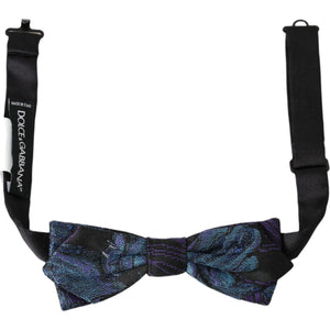 Dolce & Gabbana Black Blue Brocade Adjustable Neck Men Bow Tie