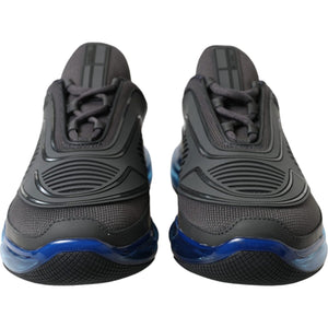 Prada Black Blue Rubber Knit Slip On Low Top Sneakers Shoes