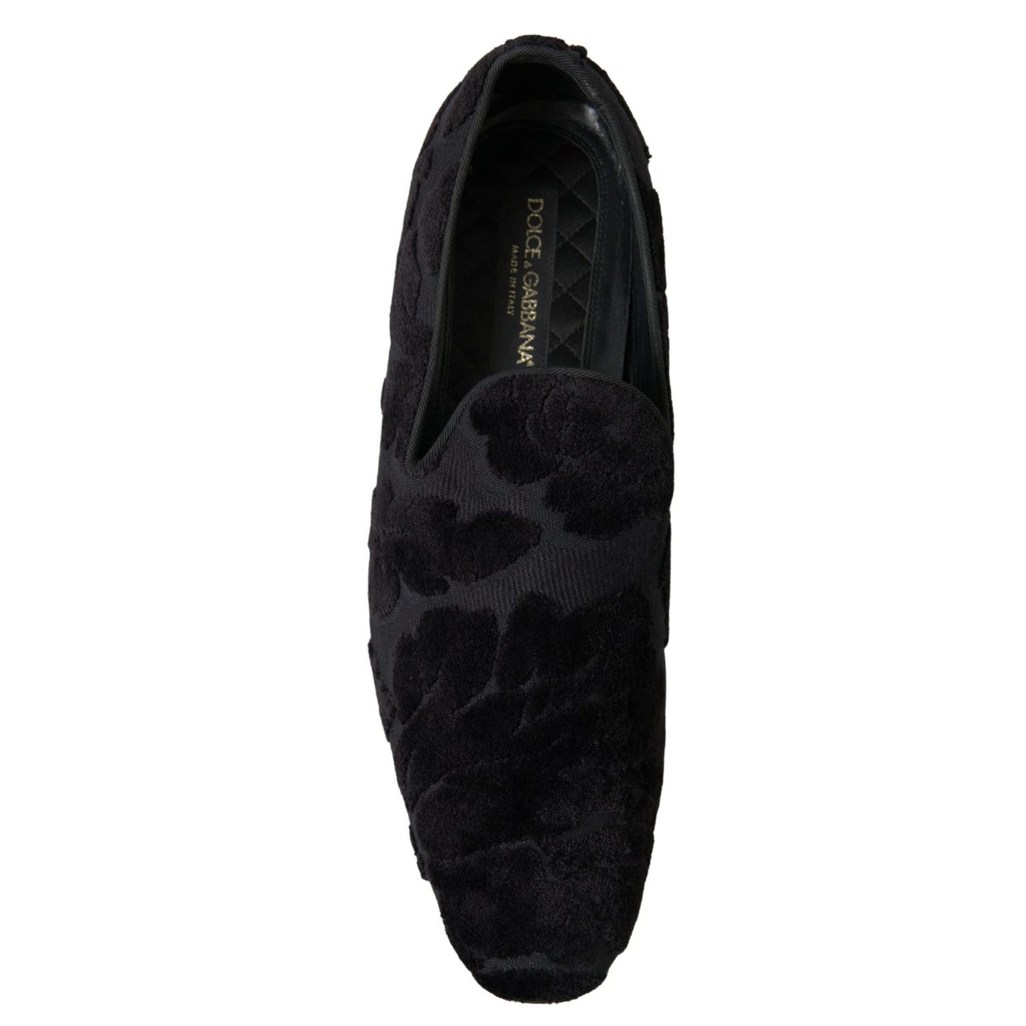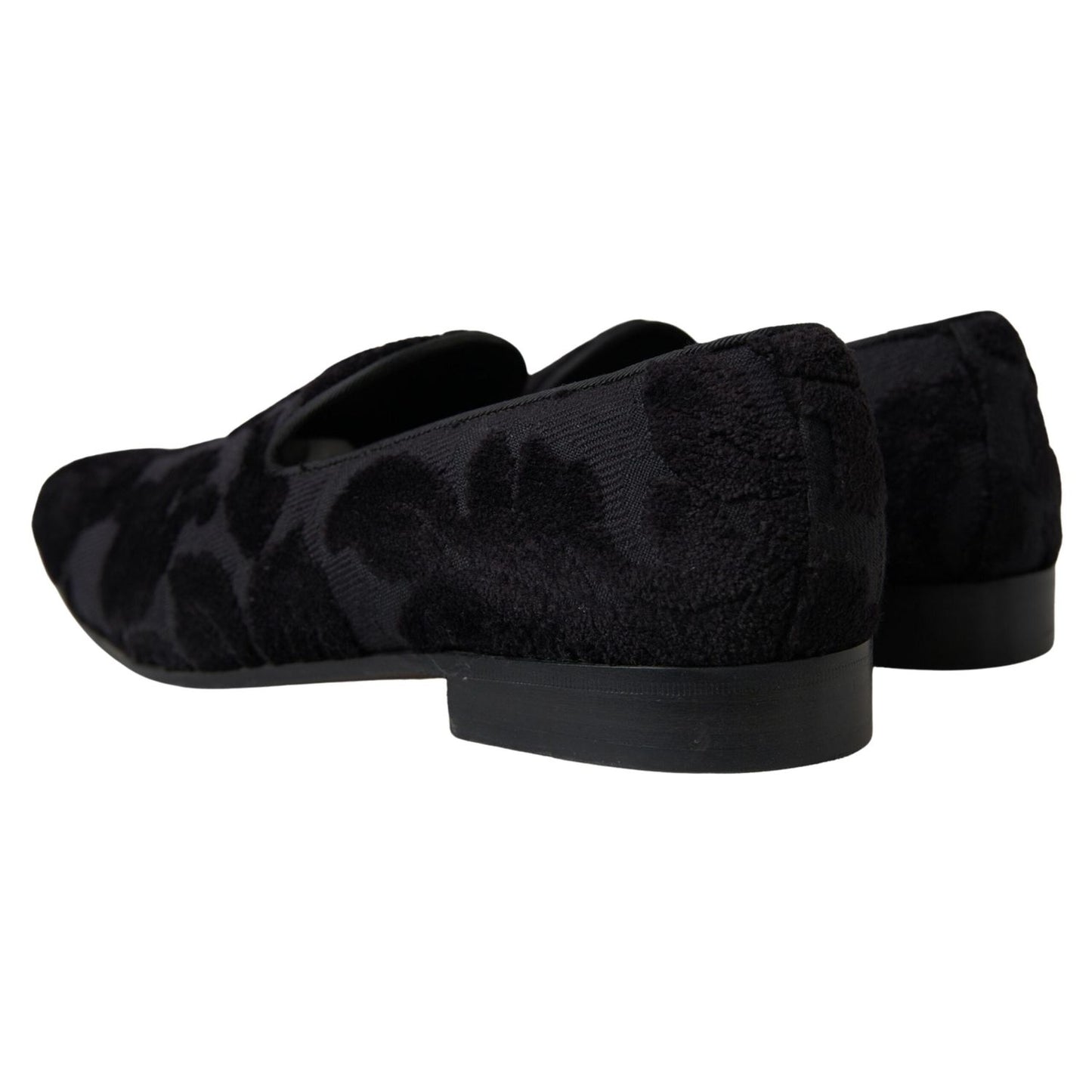 Dolce & Gabbana Black Brocade Loafers Formal Shoes