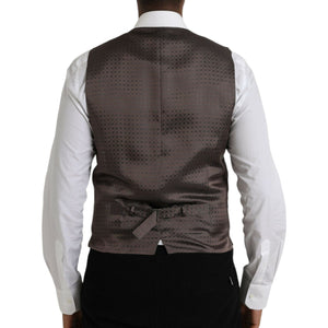 Dolce & Gabbana Black Brown Silk Waistcoat Dress Formal Vest