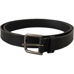 Dolce & Gabbana Black Calf Leather Logo Engraved Metal Buckle Belt