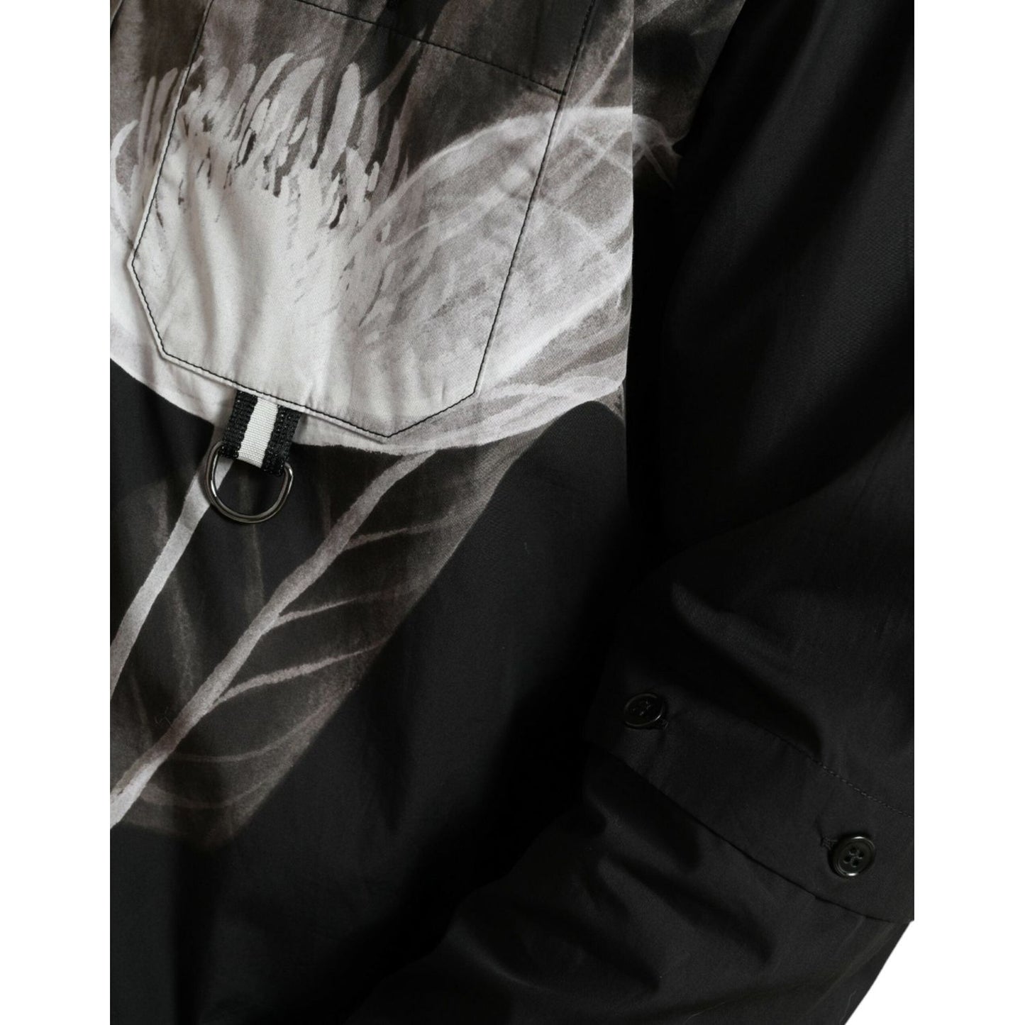 Dolce & Gabbana Black Floral Cotton Collared Long Sleeves Men Shirt