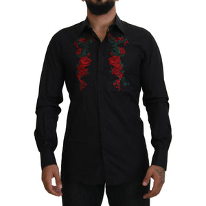 Dolce & Gabbana Black Floral Embroidery Men Long Sleeves GOLD Shirt