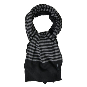 Dolce & Gabbana Black Gray Stripe Wool Neck Wrap Shawl Scarf