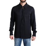 Dolce & Gabbana Black Jacquard Silk Casual Button Down Shirt