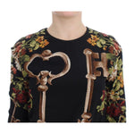 Dolce & Gabbana Black Key Floral Print Silk Blouse Top
