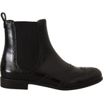Dolce & Gabbana Black Leather Ankle High Flat Boots Shoes