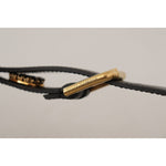 Dolce & Gabbana Black Leather Embellished Crystal Logo Belt