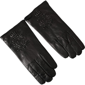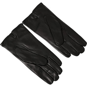 Dolce & Gabbana Black Leather Embossed Logo Short Hands Gloves
