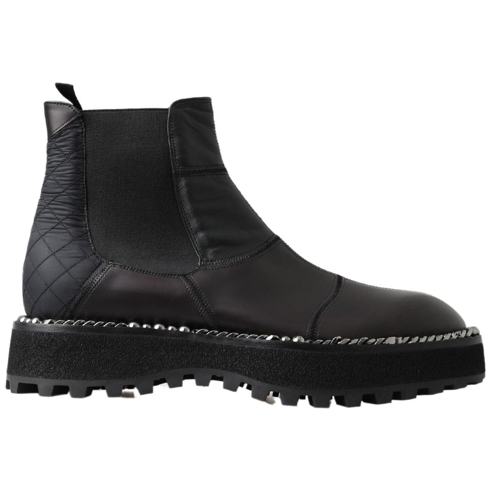 Dolce & Gabbana Black Leather Slip on Stretch Boots