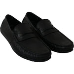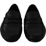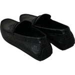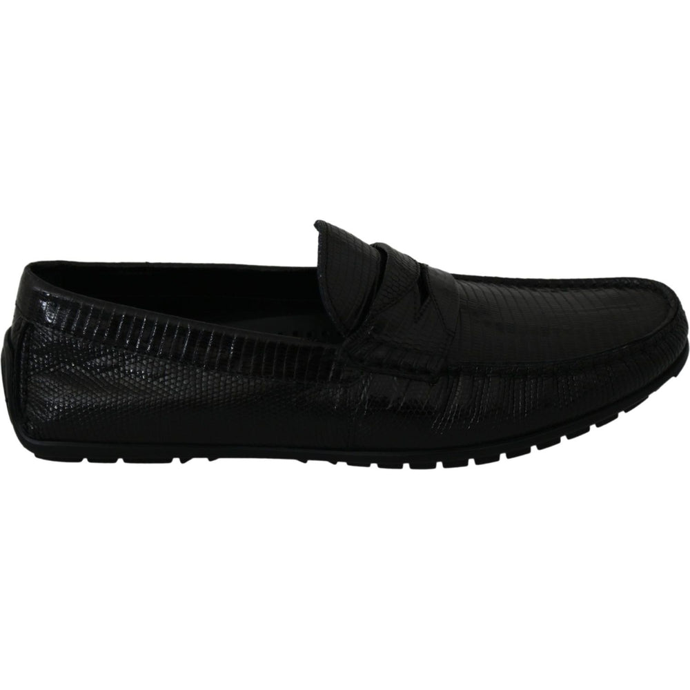 Dolce & Gabbana Black Lizard Leather Flat Loafers Shoes