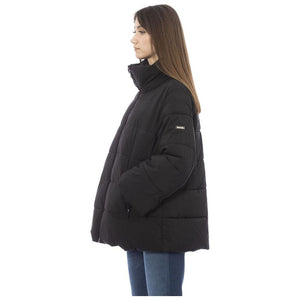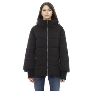 Make a bold statement with this ‘Baldinini Trend’ Short Down Jacket, where functionality meets cutting-edge style. Its sleek black polyamide and elastane blend marvelously wraps you in warmth without compromising on fashion. Equipped with external threaded pockets and an adjustable hood for those brisk days, each detail is designed with precision. The iconic Baldinini Trend monogram in metal adds a distinguished flair, while the zip front closure ensures a seamless and snug fit. This is not just a jacket—it’s an armory of style ready to elevate your wardrobe.