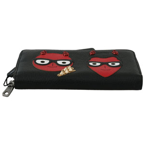 Dolce & Gabbana Black Red Leather #DGFAMILY Zipper Continental Wallet