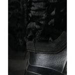 Dolce & Gabbana Black Rubber Lace Up Shearling Rain Boots Shoes