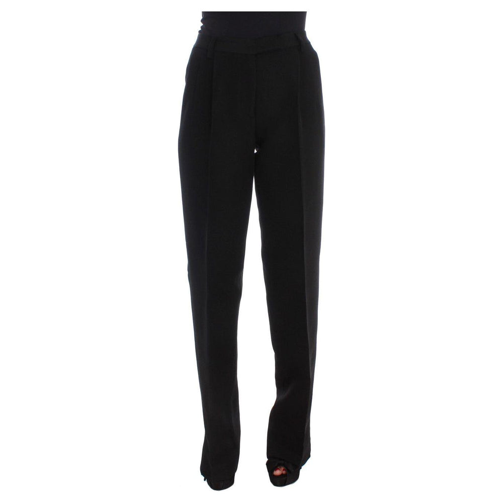 Ermanno Scervino Black Striped Cotton Blend Wide Legs Pants