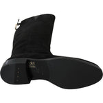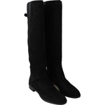 Dolce & Gabbana Black Suede Knee High Flat Boots Shoes