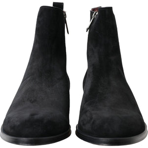 Dolce & Gabbana Black Suede Leather Mid Calf Men Boots Shoes