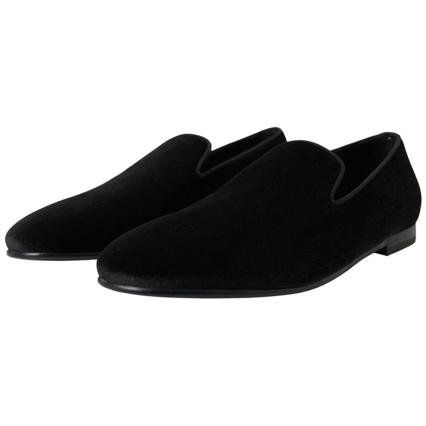 • Dolce & Gabbana Black Velvet Loafers Formal Shoes