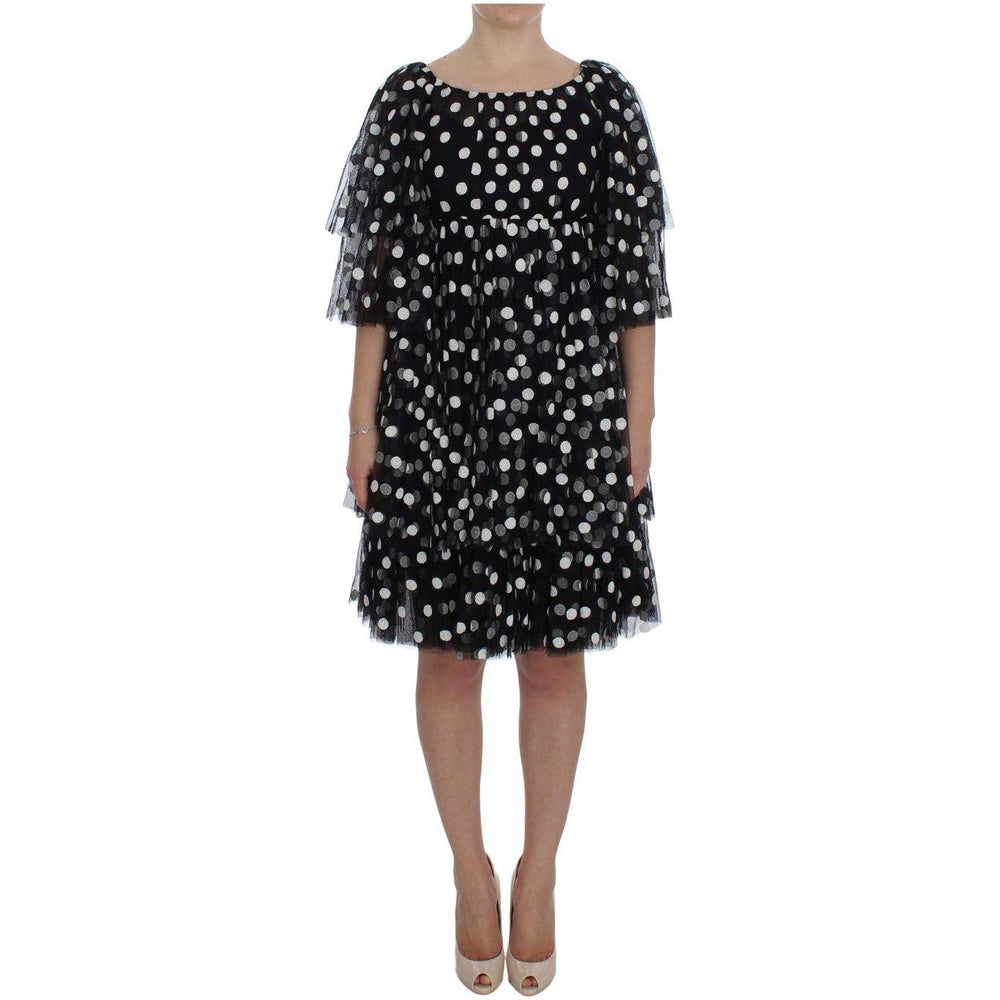 Dolce & Gabbana Black White Polka Dotted Ruffled Dress