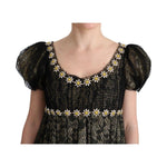 Dolce & Gabbana Black Yellow Crystal Lace Shift Dress