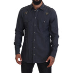 Dolce & Gabbana Blue Cotton Denim Crystal Bee Shirt