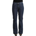 GF Ferre Blue Cotton Mid Waist Flared Denim Jeans