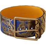 Dolce & Gabbana Blue Floral Patchwork Leather Wide Waist Buckle Belt
