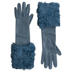 Dolce & Gabbana Blue Leather Fur Mid Arm Length Gloves