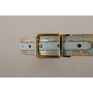 Dolce & Gabbana Blue Leather Jacquard Embossed Gold Metal Buckle Belt