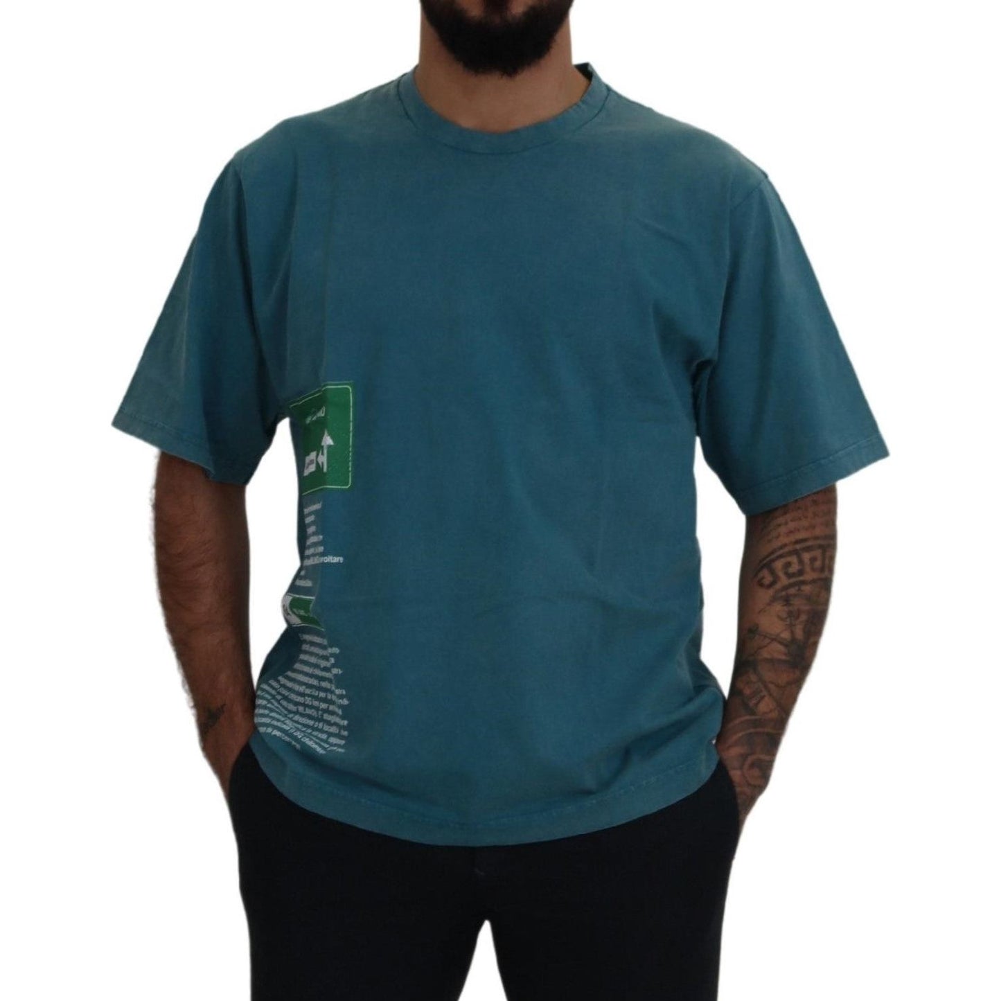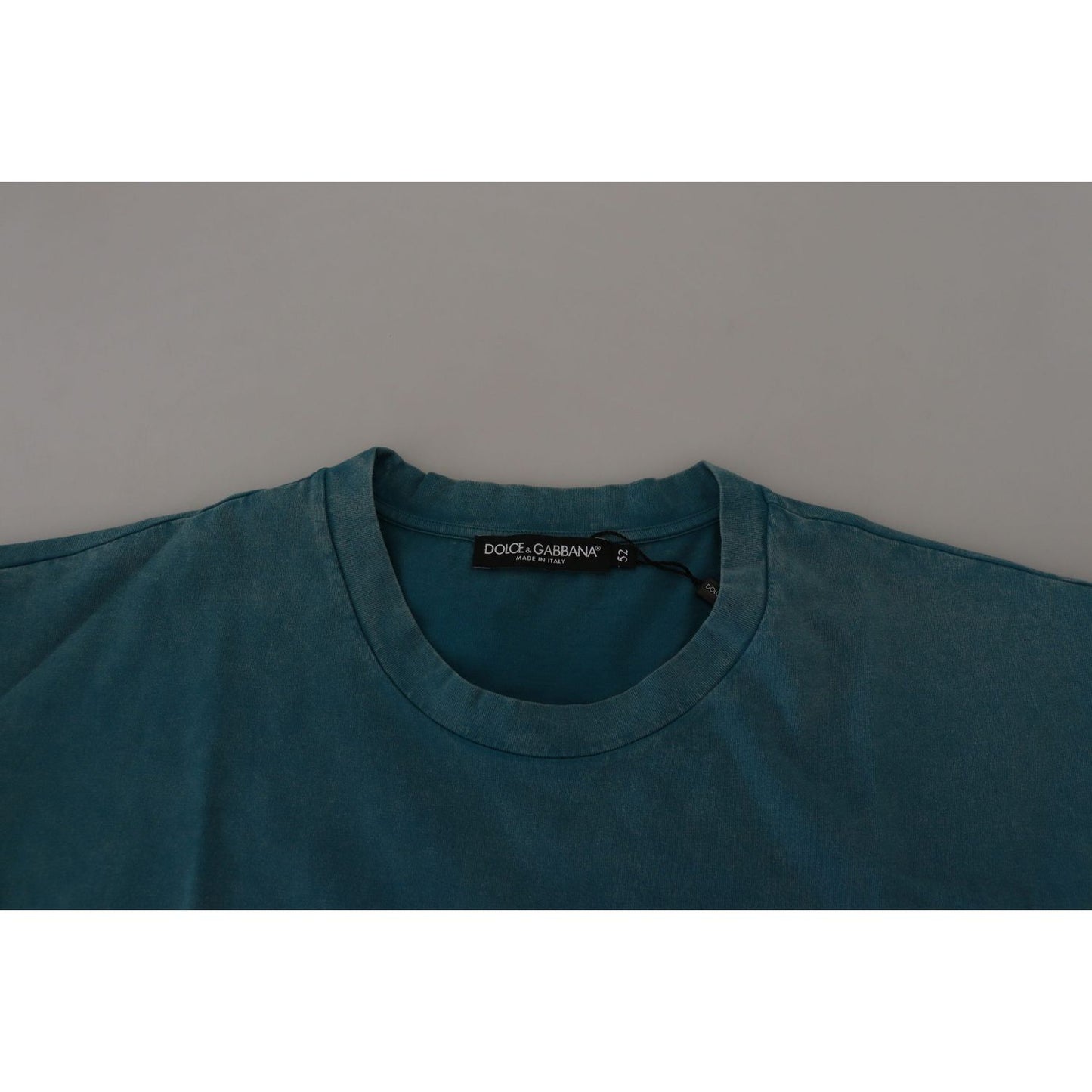 Dolce & Gabbana Blue Logo Print Crewneck Cotton T-shirt