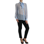 Dolce & Gabbana Blue Long Sleeves Ascot Collar Blouse Top