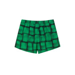 Boxer Swimsuit with Cassette Print Bottega Veneta. Green nylon boxer swimsuit with iconic Cassette print allover, elastic waist with adjustable drawstring, two side pockets, internal mesh.
