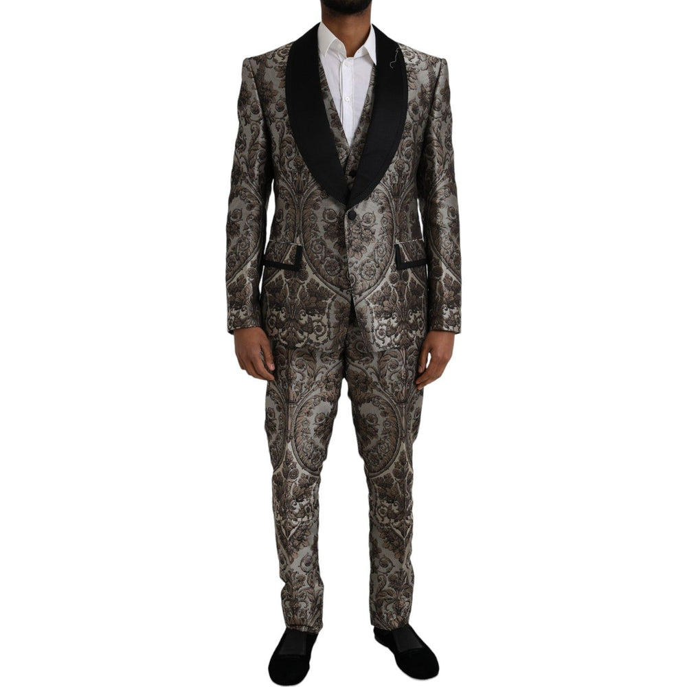 Dolce & Gabbana Brown Floral Jacquard Formal 3 Piece Suit