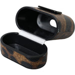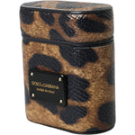 Dolce & Gabbana Brown Leopard Calf Leather Metal Logo Plaque Airpods Case