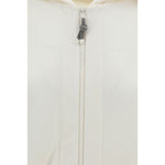 Brunello Cucinelli’s cotton Hoodie is a casual yet sophisticated piece enhanced by unique details. The two side welt pockets are embellished with appliquéd shiny jewels, adding a touch of elegance to the design. The zipper closure on the front panel and the monochrome pattern make it a versatile and easy-to-match piece. This sweatshirt combines comfort and style, ideal for a modern and refined look.