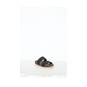 Leather Sandals by Brunello Cucinelli, double front strap embellished with iconic all-over appliquéd glittery jewels, suede logo insole, flat leather sole.