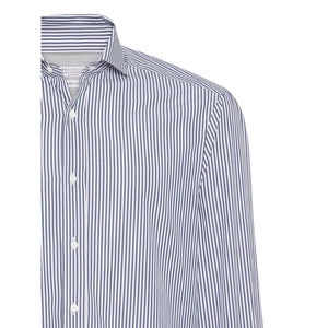 white and navy blue vertical stripe pattern long sleeves button cuffs classic collar front button closure Cotton shirt