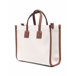 cream/brown cotton/leather logo print to the front contrasting trim gold-tone hardware two top handles adjustable detachable shoulder strap snap fastening main compartment front flap pocket Pocket mini tote bag Size and Fit - Width 9,06 in / 23 cm Height 7,48 in / 19 cm Depth 3,15 in / 8 cm Handle 3,54 in / 9 cm Strap 18,5 in / 47 cm.