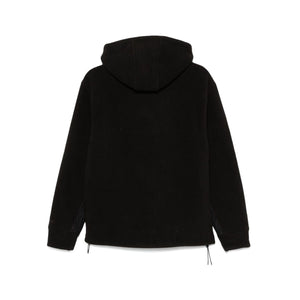 black fleece texture drawstring hood long sleeves rubberised logo detail expandable sides French terry lining drawstring hem Drawstring hoodie Size and Fit - This piece fits true to size. We recommend you get your regular size. Model is 1,84m / 6ft 1in wearing size M
