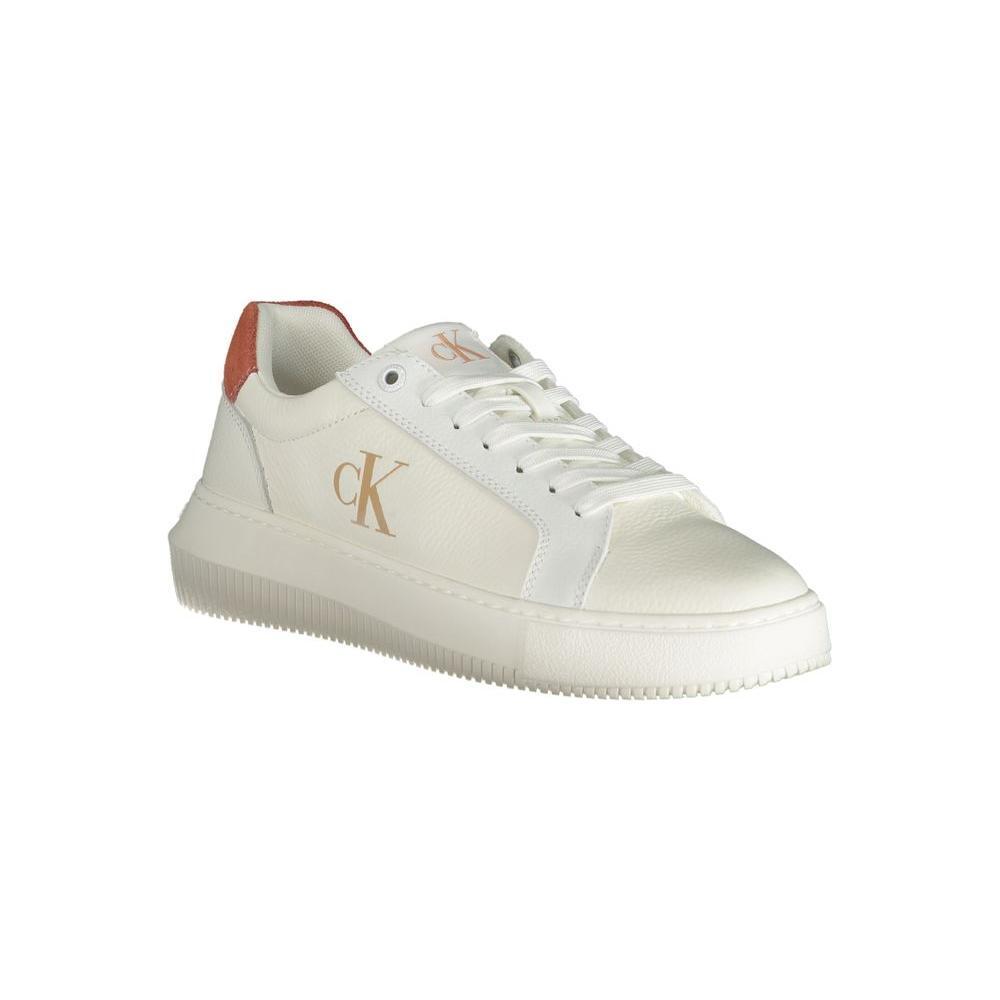 Elevate your athleisure ensemble with the dynamic fusion of style and comfort in these Calvin Klein sneakers. Striking the perfect balance between sporty and chic, these kicks feature eye-catching pink accents and the iconic logo that pop against the crisp white background. Crafted with a harmonious blend of polyester, leather, and polyethylene, they promise a durable wear experience for the fashion-forward individual on the go. Make a statement with every step.