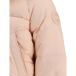 The Chilliwack padded Jacket by Canada Goose features an adjustable down-filled hood and a flap with hidden snaps that protects the two-way zipper. It features ribbed knit recessed cuffs and an inner hem drawcord for better adjustment. Internal backpack straps allow you to carry the garment without using your hands. Completing the design are two zippered and fleece-lined hand pockets, a zippered sleeve pocket and an inner drop-in pocket.