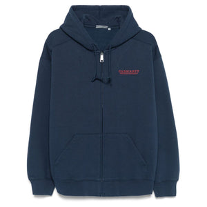 navy blue front zip fastening two front pouch pockets embroidered logo at the chest graphic print to the rear Logo cotton zipped hoodie Size and Fit - This piece fits true to size. We recommend you get your regular size. Model is 1,84m / 6ft 1in wearing size M