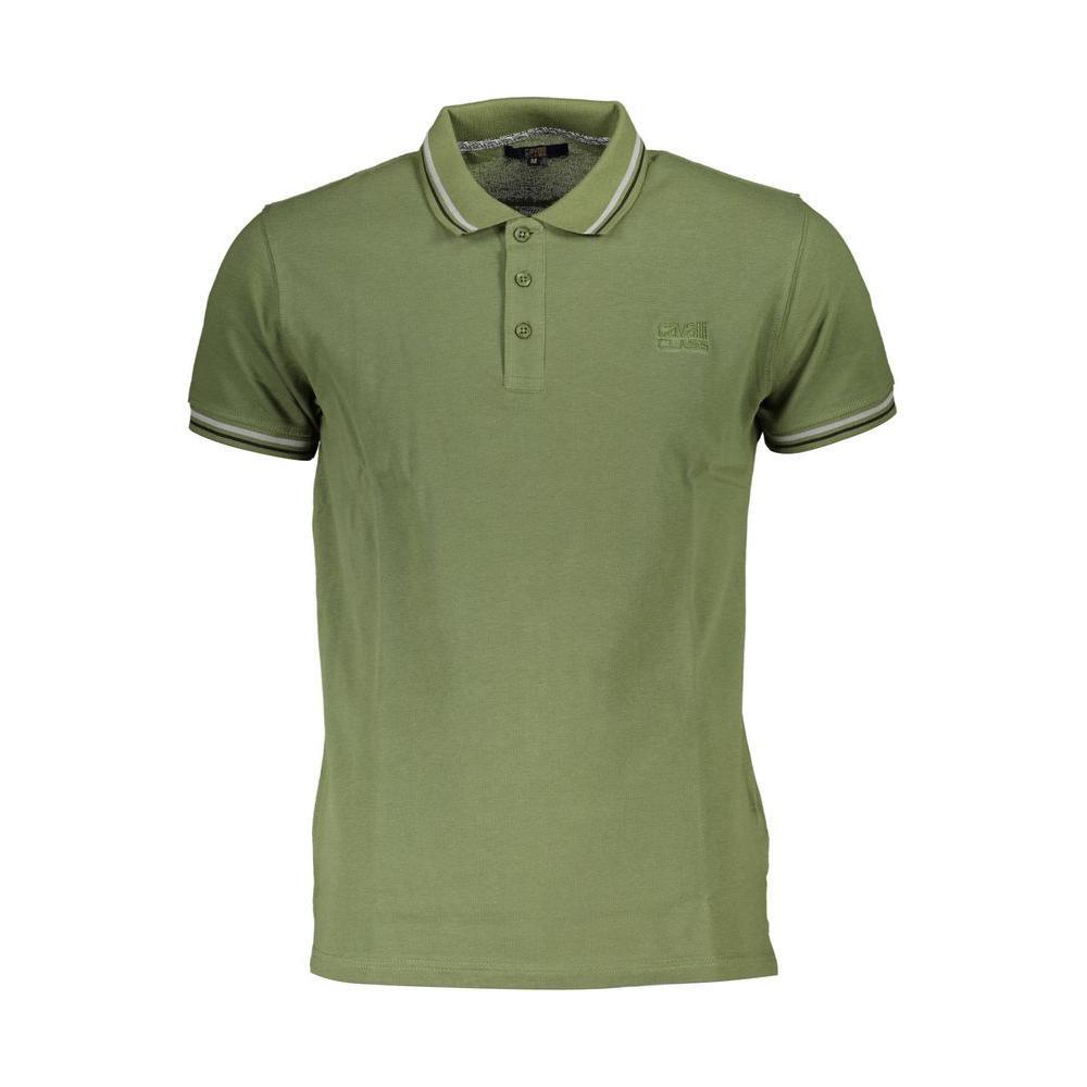 Cavalli Class Green Cotton Men Polo Shirt