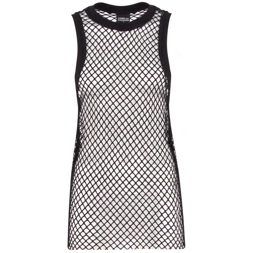 Elevate your streetwear collection with this audacious ‘Comme Des Fuckdown’ mesh tank top, designed for the bold fashionista who isn’t afraid to make a statement. Featuring the brand’s iconic logo side stripes, this piece is a perfect blend of daring style and comfort. Seamlessly transition from a day in the city to a night out with this versatile and trendy top.