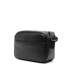 black calf leather smooth grain embroidered logo to the front top zip fastening adjustable detachable shoulder strap slip pocket to the rear main compartment debossed internal logo internal zip-fastening pocket full lining silver-tone hardware This piece comes complete with a protective dust bag. Leather camera bag Size and Fit - Width 7,09 in / 18 cm
