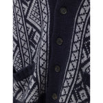 Cruciani Blue Cashmere Cardigan. Contrasting workmanship in grey, shawl collar, two front pockets, button closure, soft to the touch. Composition: 100% Cashmere