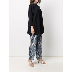 navy cotton knitted construction ribbed detailing tonal stitching boat neck three-quarter length sleeves flared design Cotton boat-neck sweater Size and Fit - This piece fits true to size. We recommend you get your regular size. Model is 1,75m / 5ft 8in wearing size UNI